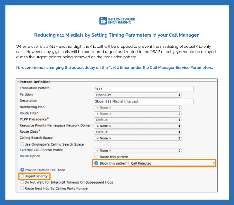 - Every phone (soft or physical capable of dialing the public switch network), has to be able to dial 911 directly without any type of access code.
